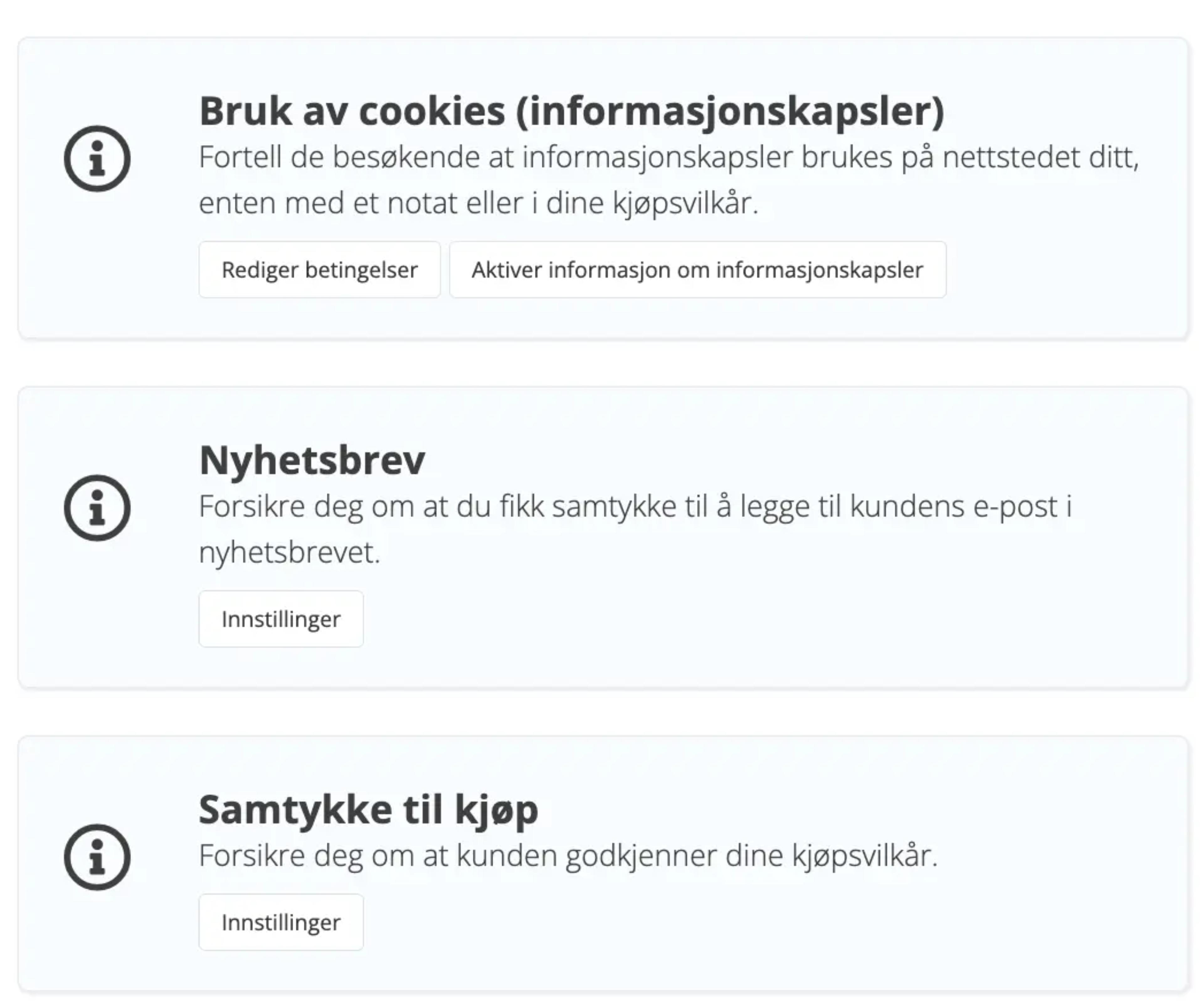 I tillegg til det som er nevnt ovenfor så har vi også skapt en unik funksjon. GDPR Compliant, som gjør det lettere for deg som butikkeier å følge loven. Med funksjonen GDPR Compliant får du hjelp med å finne aktiverte funksjoner som påvirker personopplysninger og en veiledning om hva du trenger å tenke på.